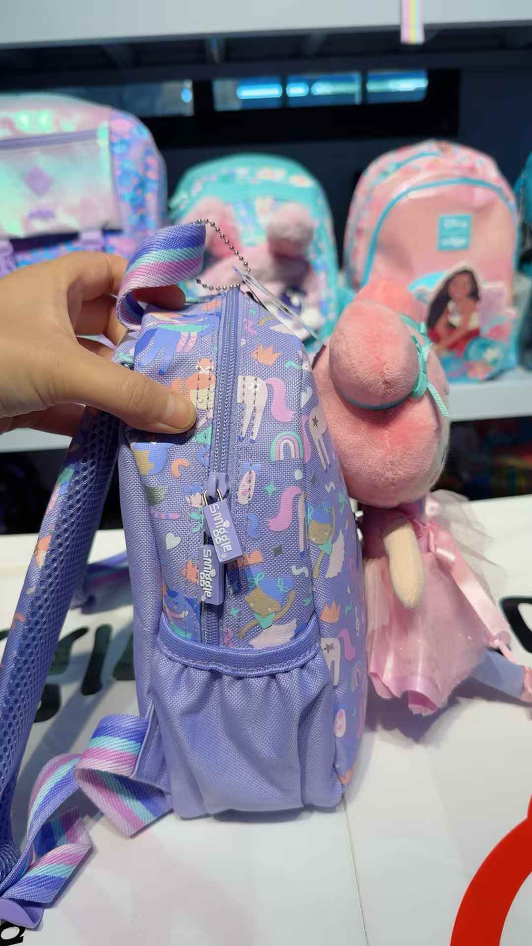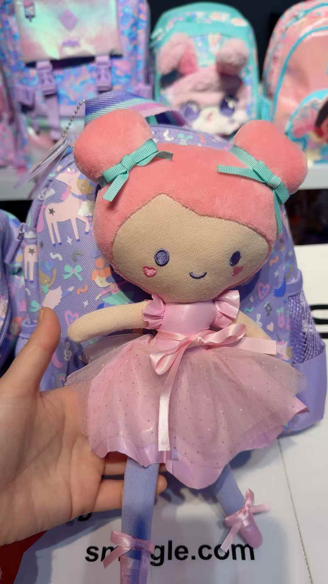 Bring an adorable doll friend along on all adventures with our Ready Set Go Teeny Tiny Backpack With Detachable Plush Toy! This backpack features a peach-scented plush doll, attached to the front with a lobster clasp and dainty ribbon details. Simply untie the plushie whenever your Smiggler needs a comforting cuddle! Plus, the backpack has a zipped main compartment and dual drink bottle sleeves for all essentials.