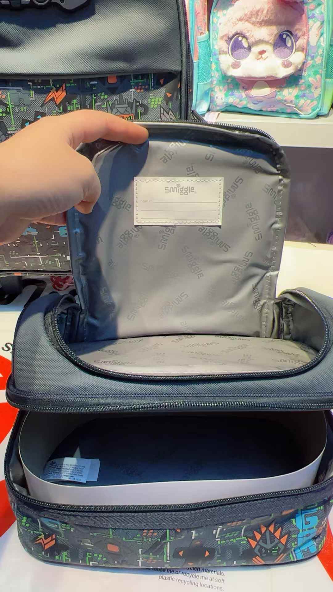 - 2 compartments with double zips