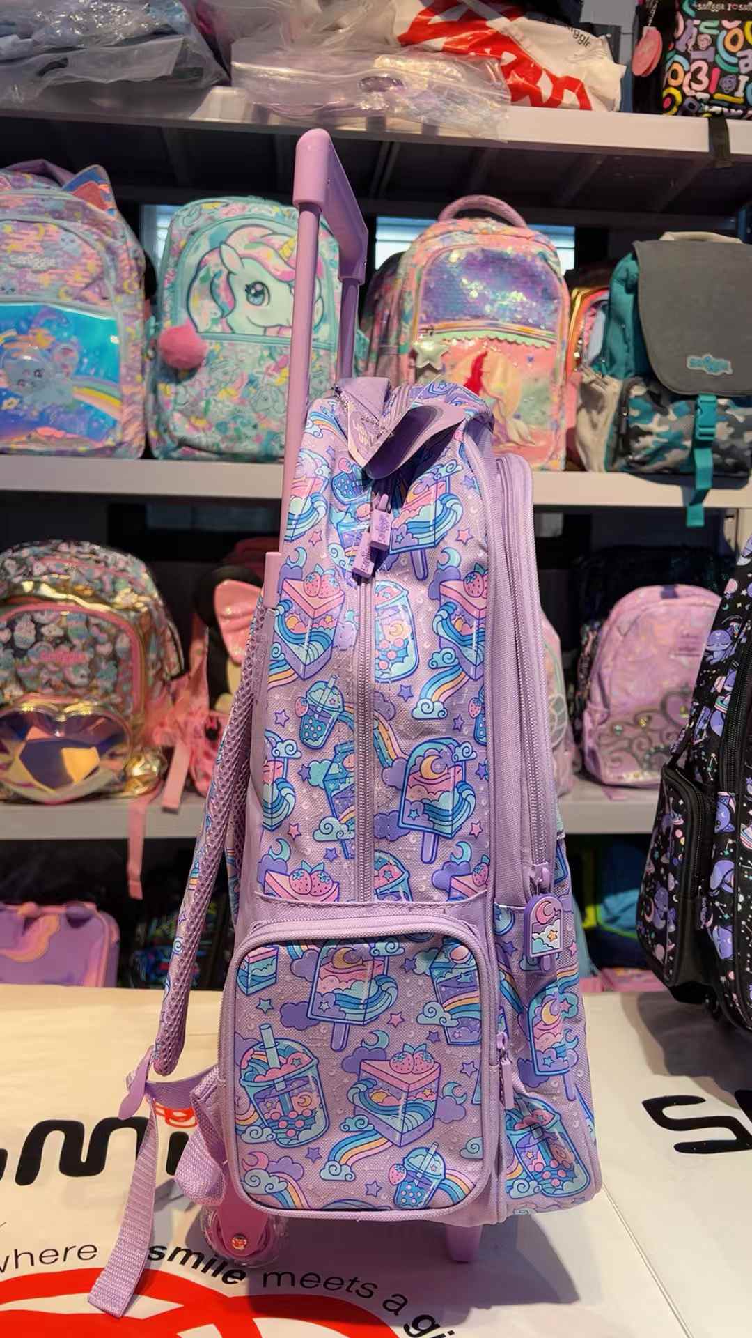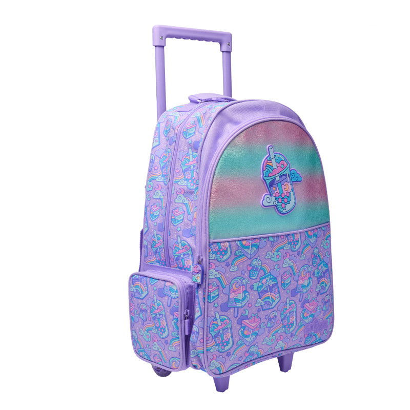 Smiggle Purple Milk Tea Trolley Backpack With Light Up Wheels