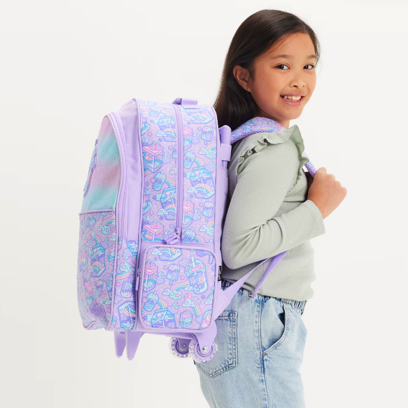 Smiggle Purple Milk Tea Trolley Backpack With Light Up Wheels