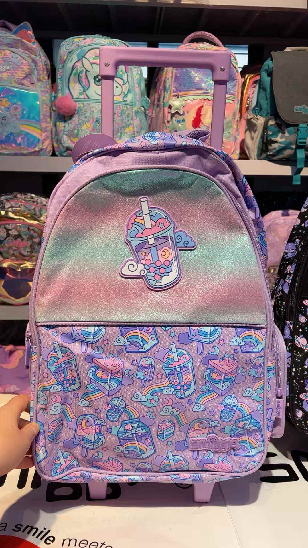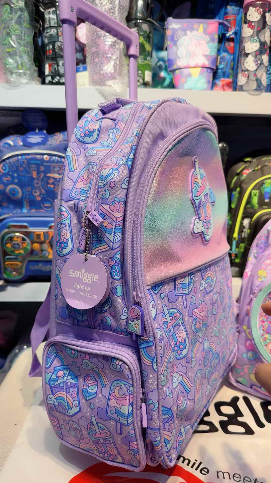 Smiggle Purple Milk Tea Trolley Backpack With Light Up WheelsSmiggle Purple Milk Tea Trolley Backpack With Light Up Wheels